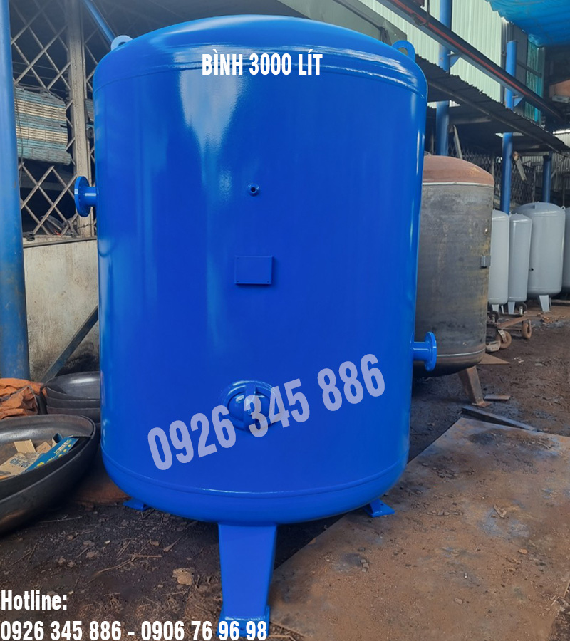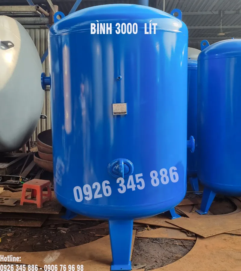 Bình nén khí 3000 lít là bình chuyên dùng để lưu giữ khí từ máy thổi khí hoặc máy chân không nhằm cung cấp khí phục vụ sản xuất của các nhà máy, xưởng sản suất.