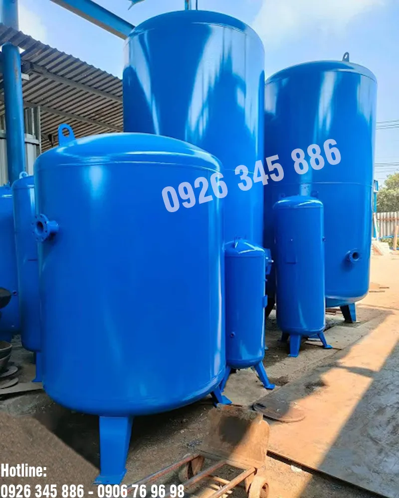 - Bình chứa khí nén sẽ tích lại khí nén được tạo ra từ máy nén khí mà vẫn có thể giữ nguyên được áp suất khí.